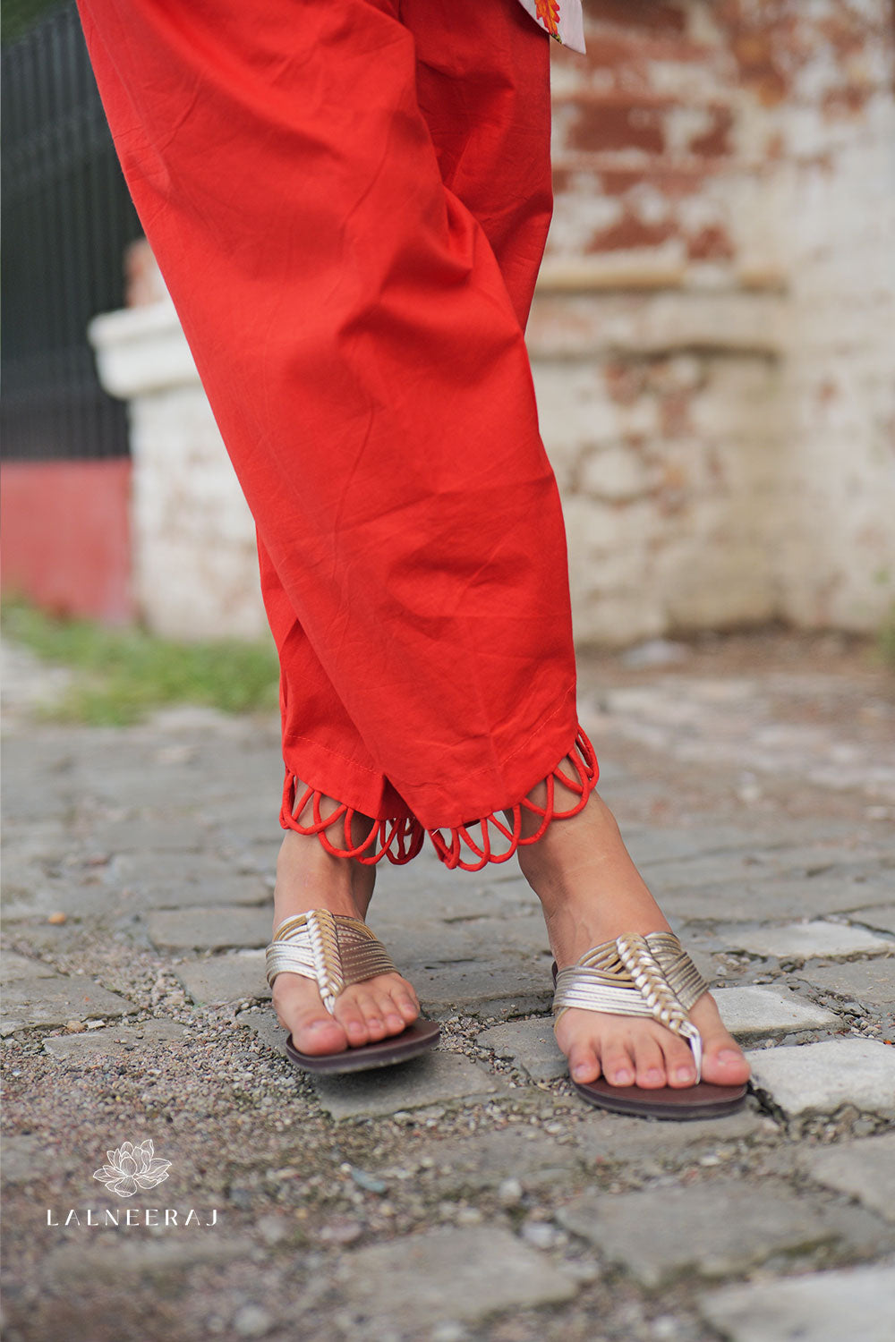 It’s paired with salwar in a solid orange tone, designed with matching loop accents at the hem. Crafted from breathable cotton, this set blends comfort, style, and movement—perfect for sunny days, brunches, casual outings, or festive get-togethers.